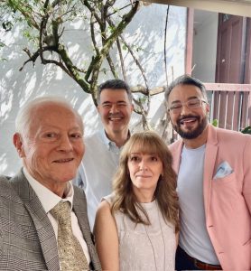 Participantes en el evento cultural, desde la izquierda, Alfredo Vanegas, Presidente del Centro de Historia de Envigado, Pablo Andrés Gómez, Arquitecto Restaurador de Casablanca, Ana María Quijano, Periodista y Héctor Gárces, Periodista.