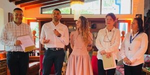 Desde la izquierda, Pablo Andrés Gómez, Restaurador de Casablanca, Juan Luis Isaza, arquitecto, Presidente de ICOMOS Colombia (International Council on Monuments and Sites – Comité Nacional de Monumentos y Sitios), Lina María Vásquez, Secretaria de Cultura.