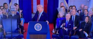 Como en 2017, volveremos a construir el ejército más fuerte que el mundo haya visto jamás. Mediremos nuestro éxito, no solo por las batallas que ganemos, sino también por las guerras que terminemos y, quizá lo más importante, por las guerras en las que nunca nos metamos. El legado del que me sentiré más orgulloso será el de pacificador y unificador. Eso es lo que quiero ser, un pacificador y un unificador. Me complace decir que desde ayer, un día antes de asumir el cargo, los rehenes de Oriente Próximo vuelven a casa con sus familias. Gracias.