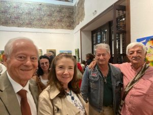 Desde la izquierda, Alfredo Vanegas, Presidente del Centro de Historia de Envigado con los pintores Ana Patricia Díez, Luis Eduardo Restrepo y Pedro Vicente Rojas.