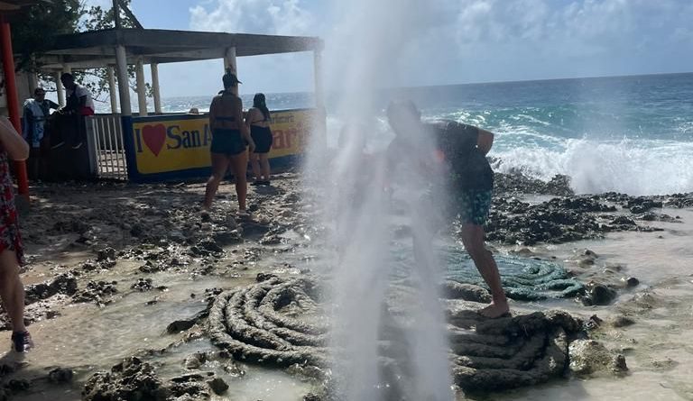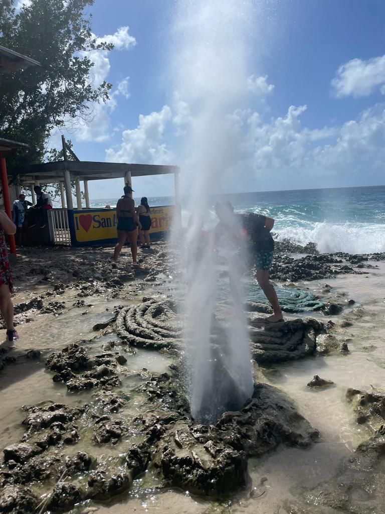 Lucas y José Andrés, Turistas de Estados Unidos, en el hermoso y activo Hoyo Soplador. Quien dijo que no sopla? Pregunta Andrés. Que sopla………sopla! Responde Lucas.