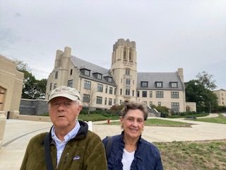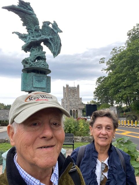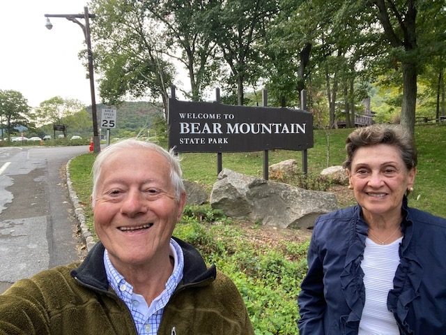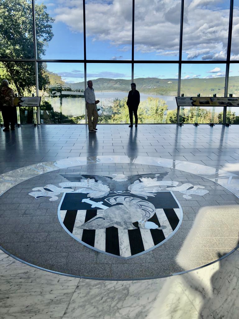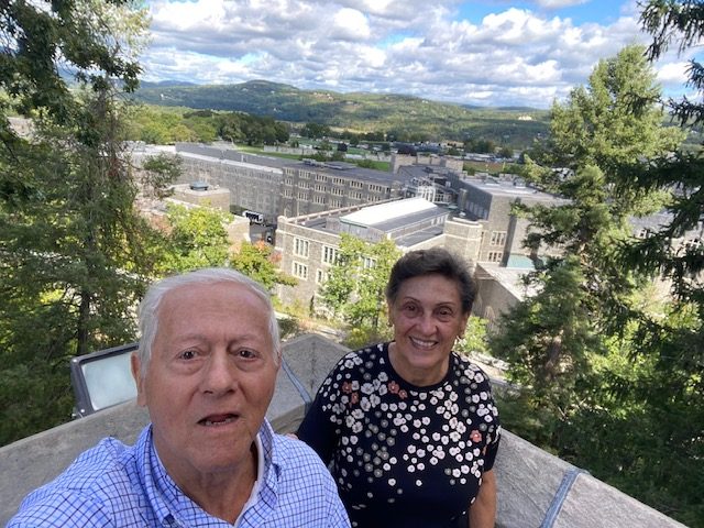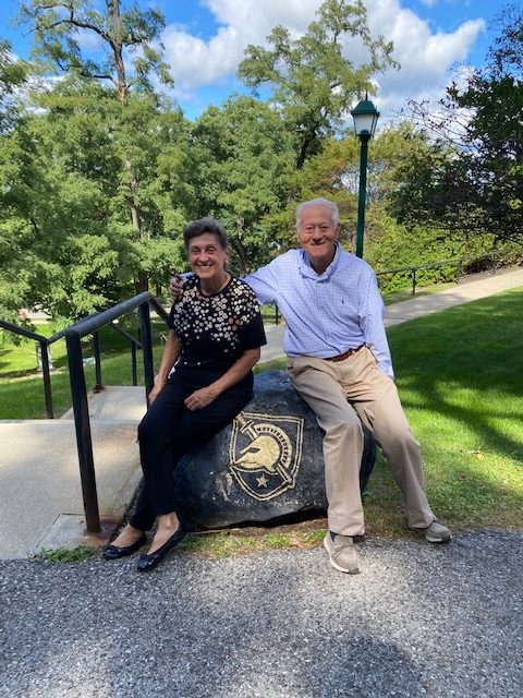 Beatriz Jaramillo y Alfredo Vanegas sobre la Piedra con el Escudo del equipo de Fútbol Universitario Army Black Knights de West Point.
