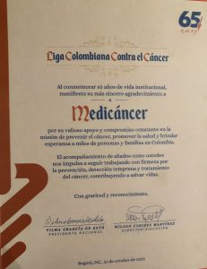 Agradecimiento de la Liga Colombiana a Medicáncer.