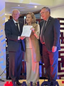 Alfredo Vanegas Montoya, Vicepresidente de Medicáncer y Miembro de la Junta Directiva Nacional de la Liga Colombiana Contra el Cáncer hizo entrega de una Moción de Felicitación y Reconocimiento enviada a la Liga por Medicáncer. La Presidenta Nacional Vilma García de Soto y el Director Ejecutivo Wilson Cubides, reciben el documento congratulatorio.