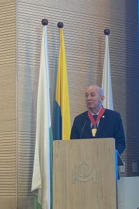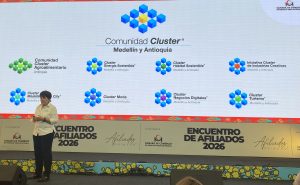Magistral intervención de la destacada profesional durante el Encuentro de Afiliados 2026 donde fue galardonado el expresidente de Nutresa, Carlos Ignacio Gallego, con la Orden Cámara de Comercio de Medellín Para Antioquia Categoría Oro.