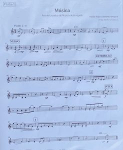 Partitura de una de las obras interpretadas, “Música” de Natalia Trejos y Leonardo Tamayo. Arreglo de Alberto González.